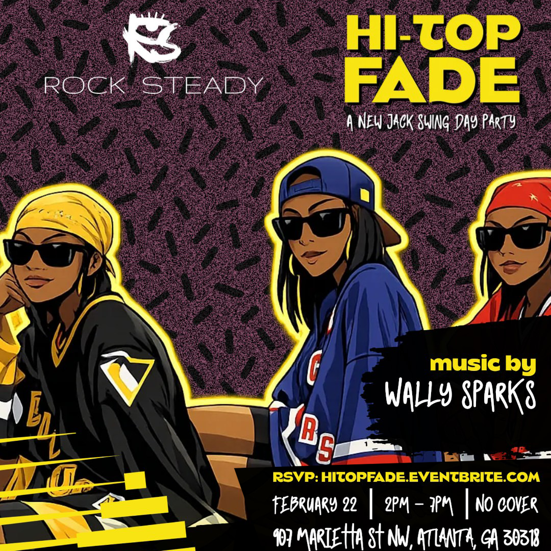 Back to All Events HI-TOP FADE (DAY PARTY) Sunday, February 22, 2026 2:00 PM 7:00 PM Rock Steady 907 Marietta Street NorthWest Atlanta, GA, 30318 United States (map) Google Calendar ICS HI-TOP FADE: A New Jack Swing Day PartyMusic by Wally SparksFREE WITH RSVP: CLICK HERE